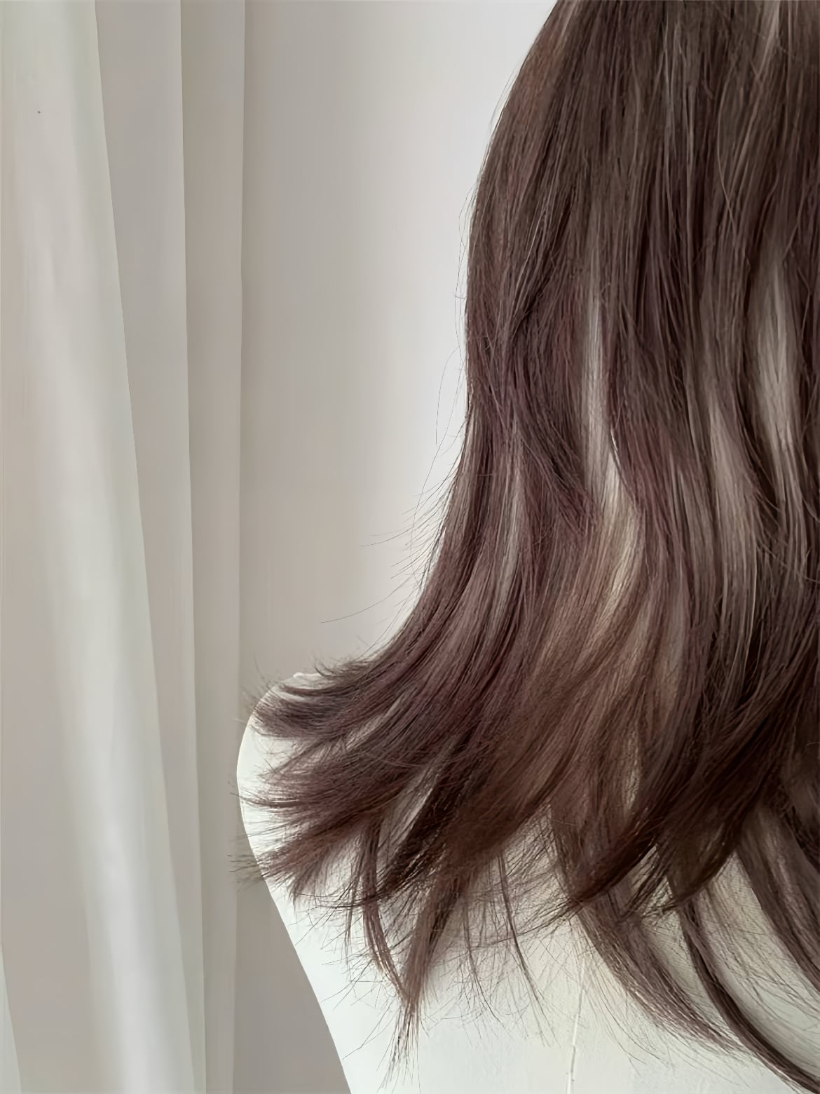 髪をまとめ、ウィッグネットをかぶってしっかり固定します。