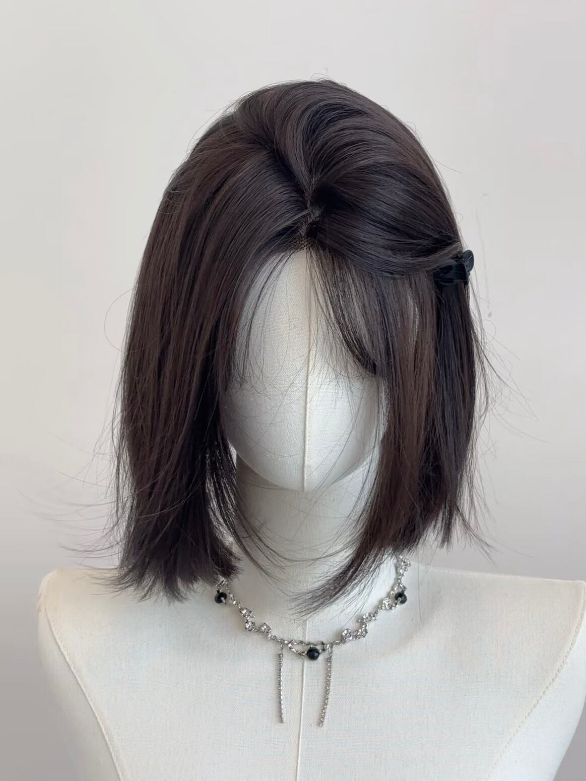 生え際が自然に見えるように微調整し、ブラシや耐熱ウィッグの場合はアイロンで整えます。