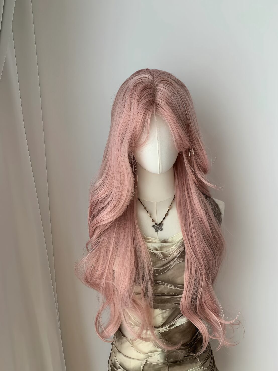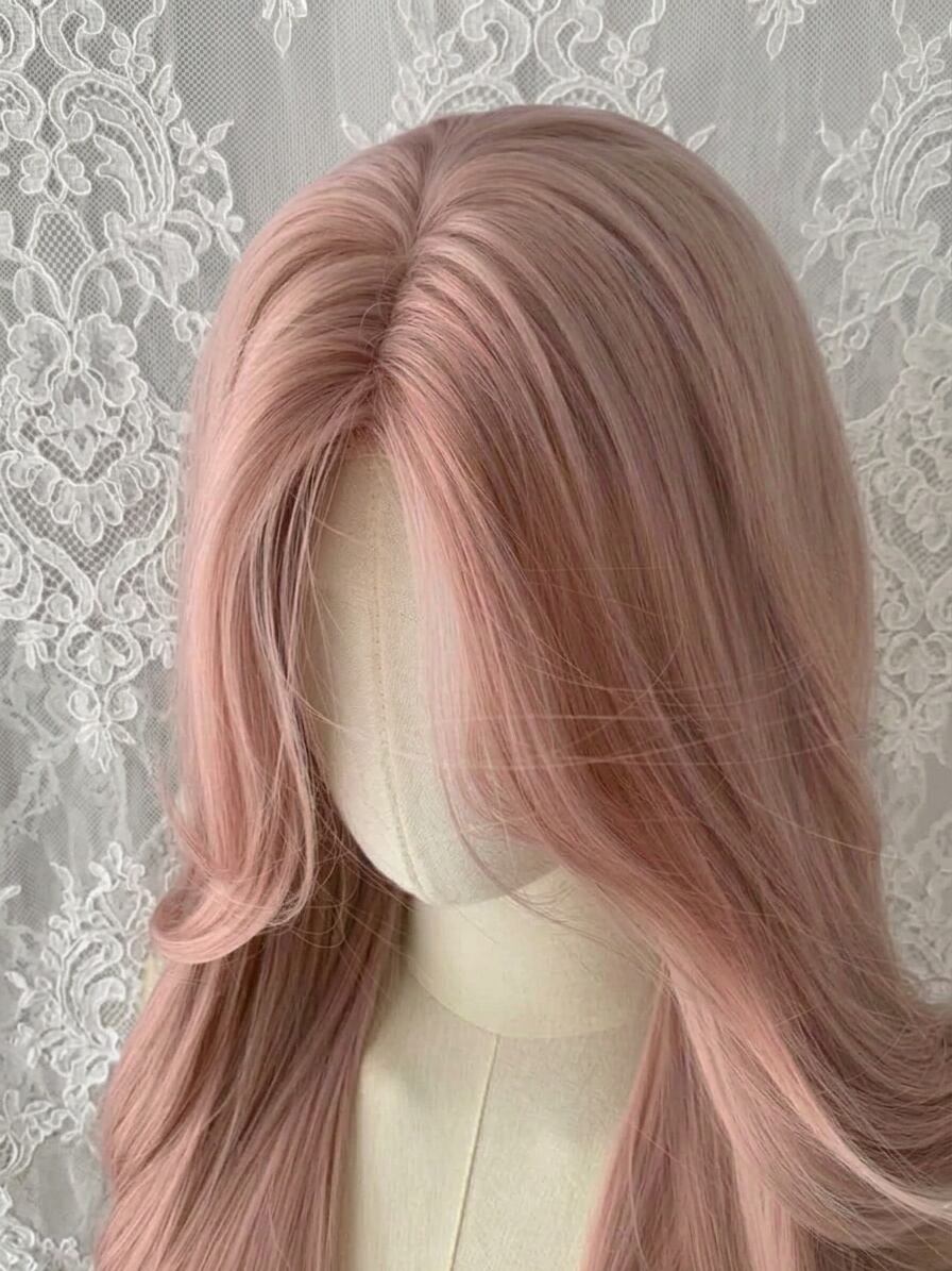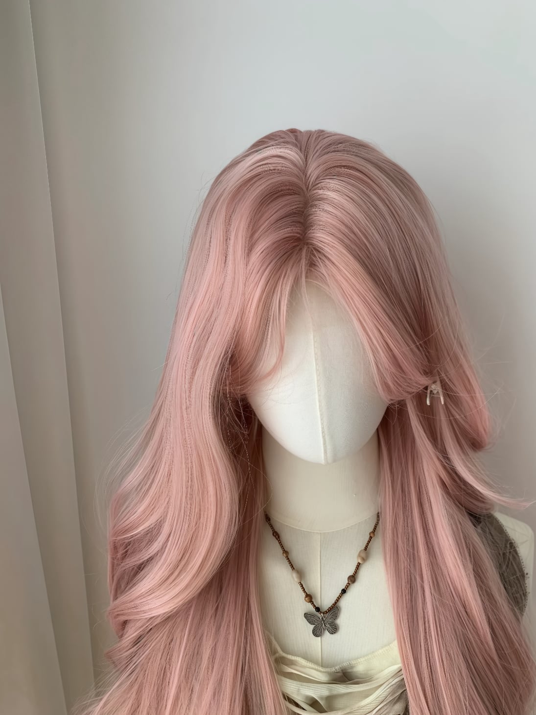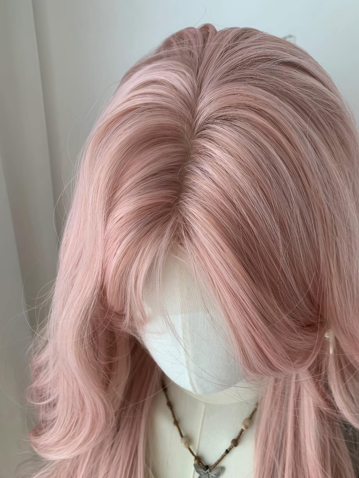 前髪の位置を確認しながら、前から後ろに向かってウィッグをかぶります。