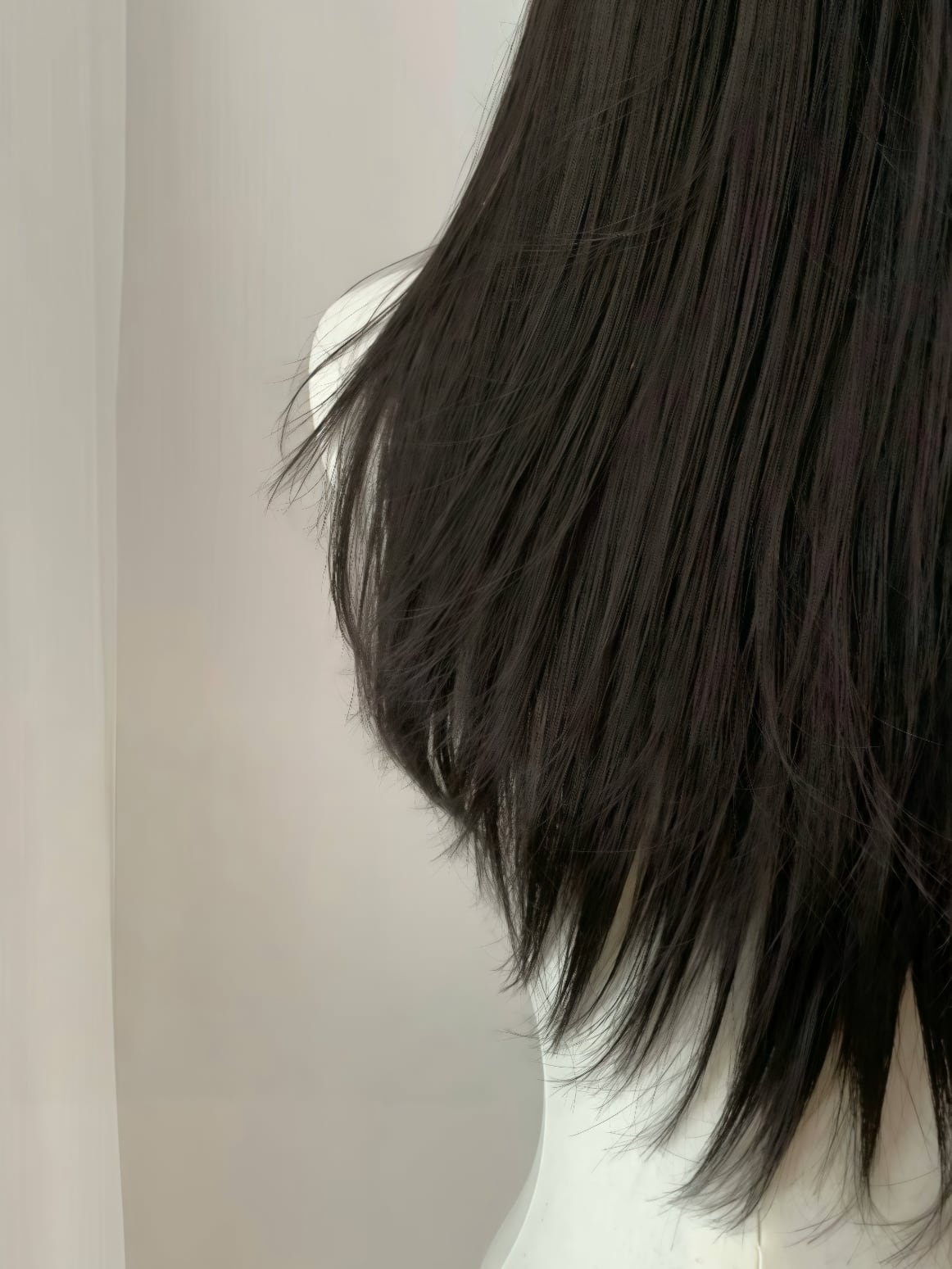 生え際が自然に見えるように微調整し、ブラシや耐熱ウィッグの場合はアイロンで整えます。
