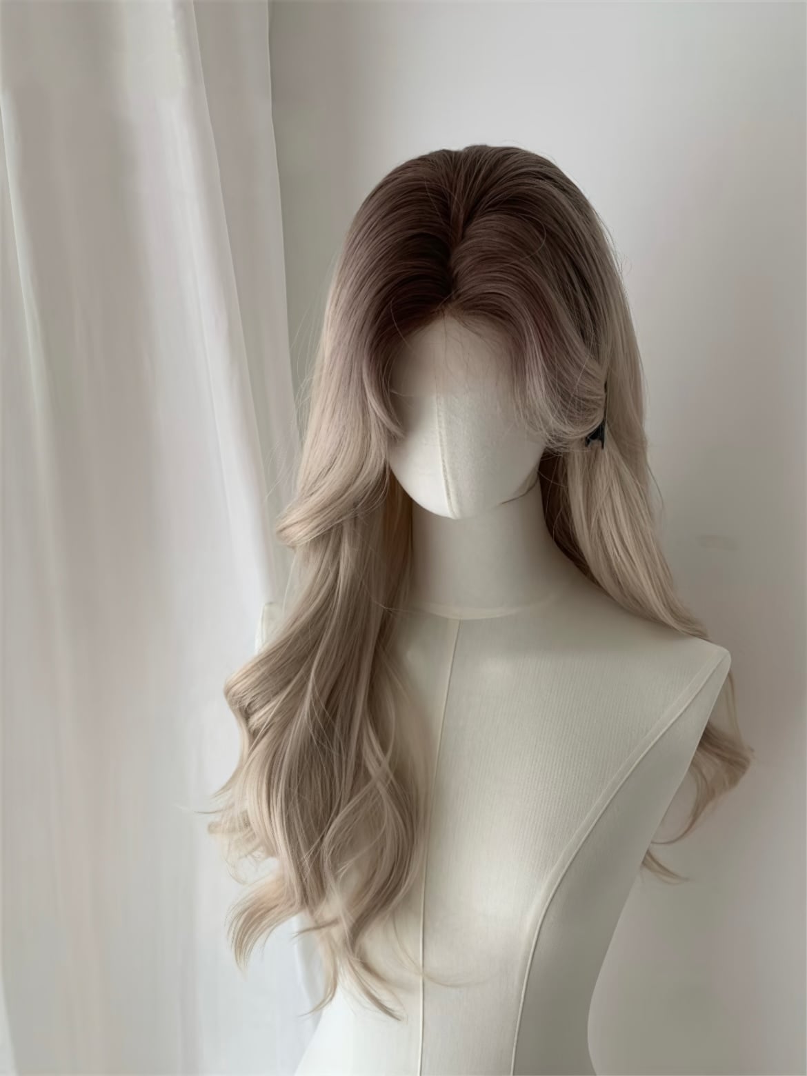 髪をまとめ、ウィッグネットをかぶってしっかり固定します。