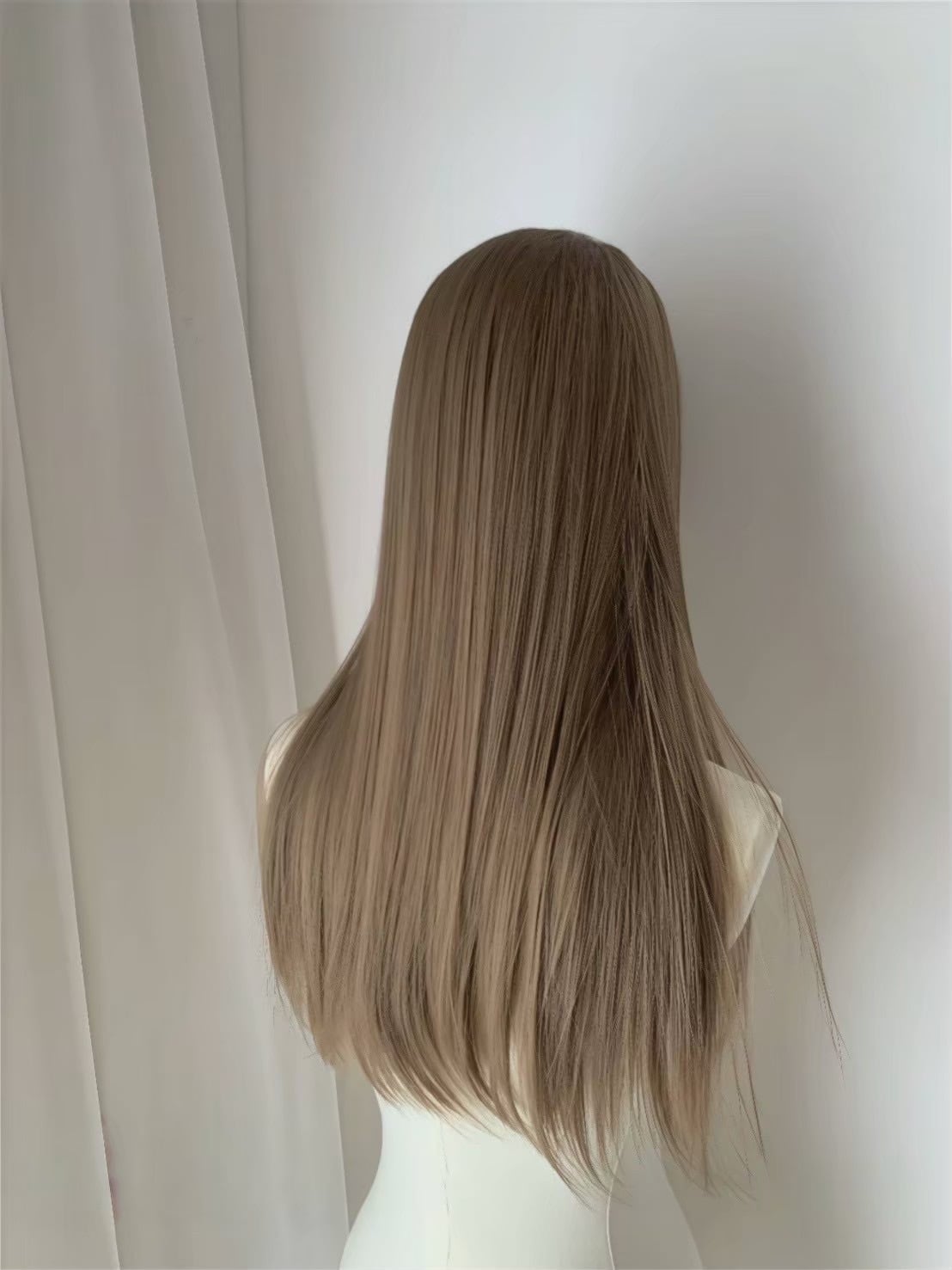 前髪の位置を確認しながら、前から後ろに向かってウィッグをかぶります。