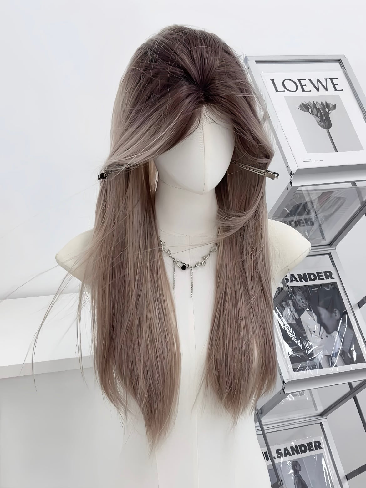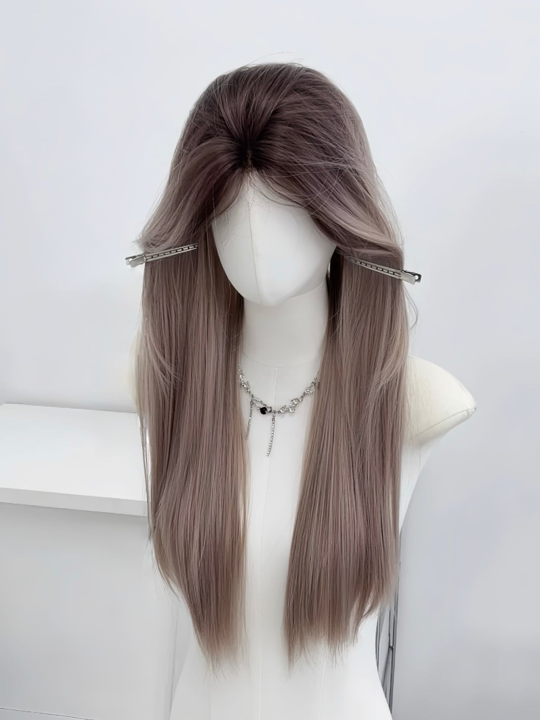 生え際が自然に見えるように微調整し、ブラシや耐熱ウィッグの場合はアイロンで整えます。