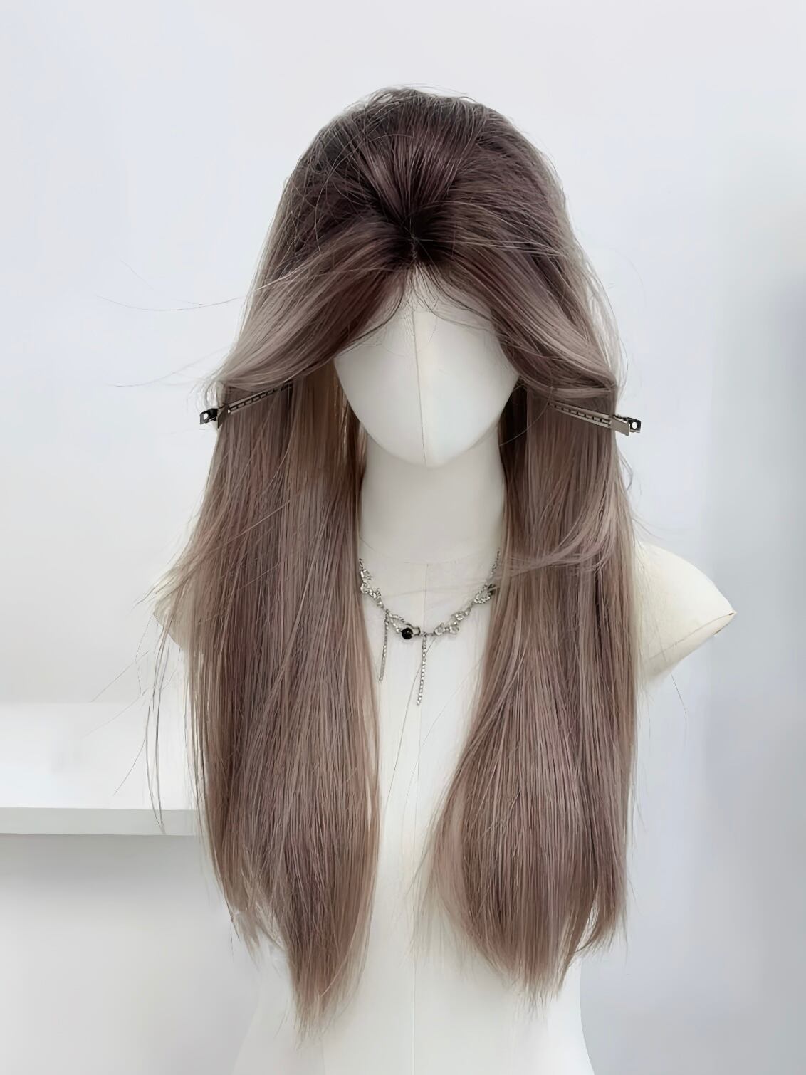 髪をまとめ、ウィッグネットをかぶってしっかり固定します。