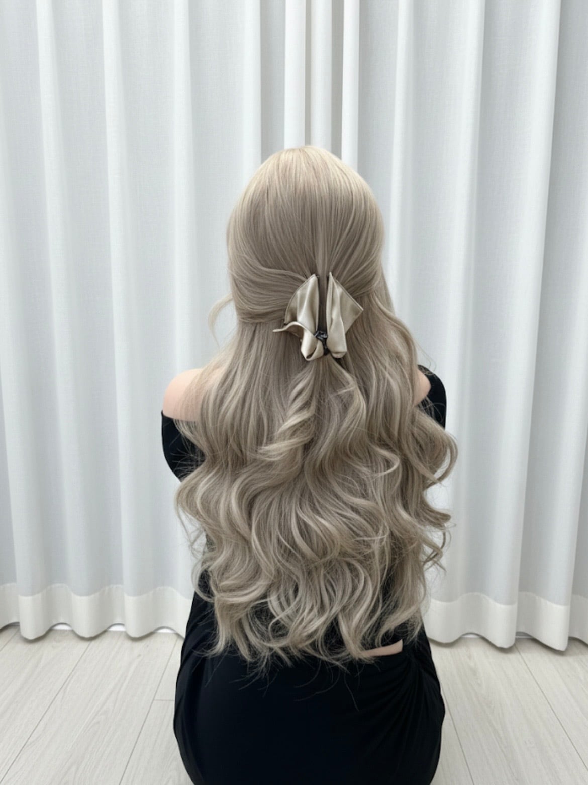 髪をまとめ、ウィッグネットをかぶってしっかり固定します。