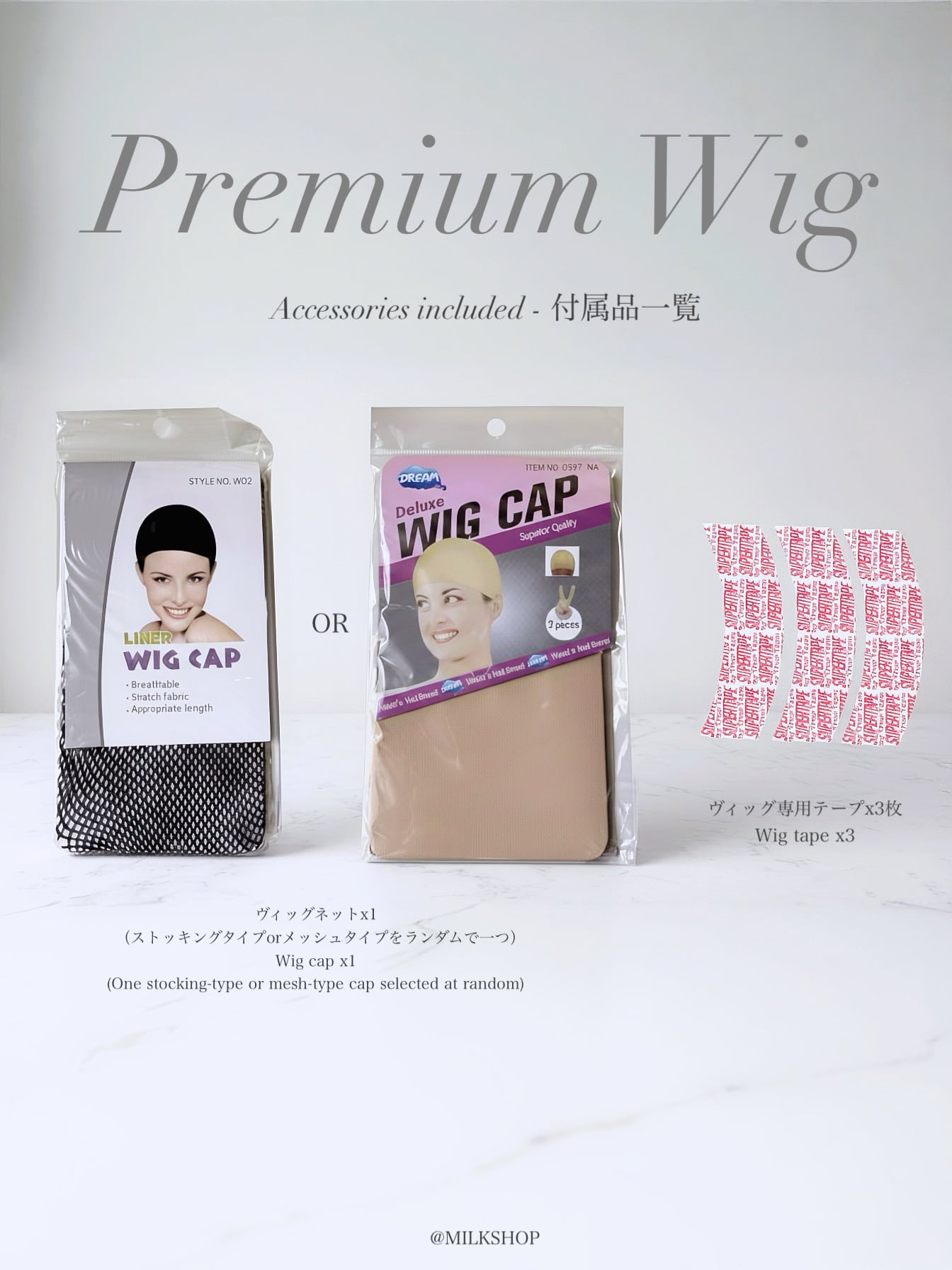 •ウィッグ専用の両面テープシールを使用します。