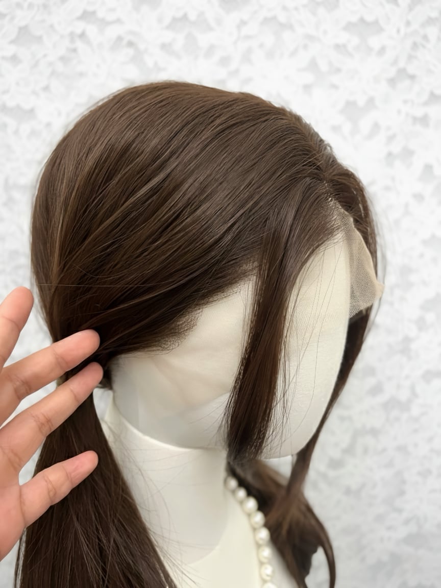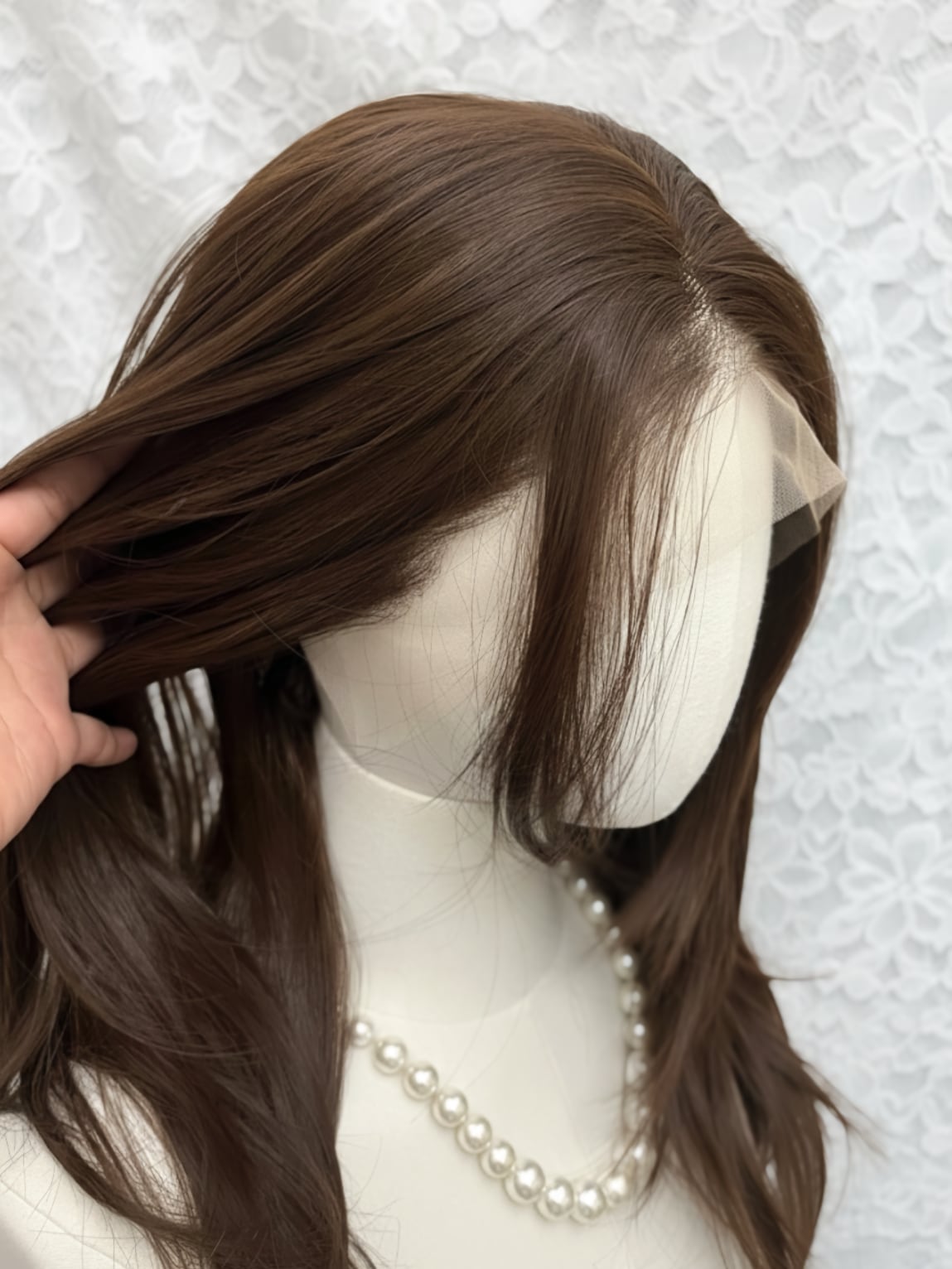 自然な生え際を再現しています。ウィッグの毛が地肌に生えているような見た目を作り、非常にリアルで自然な仕上がりを提供します。