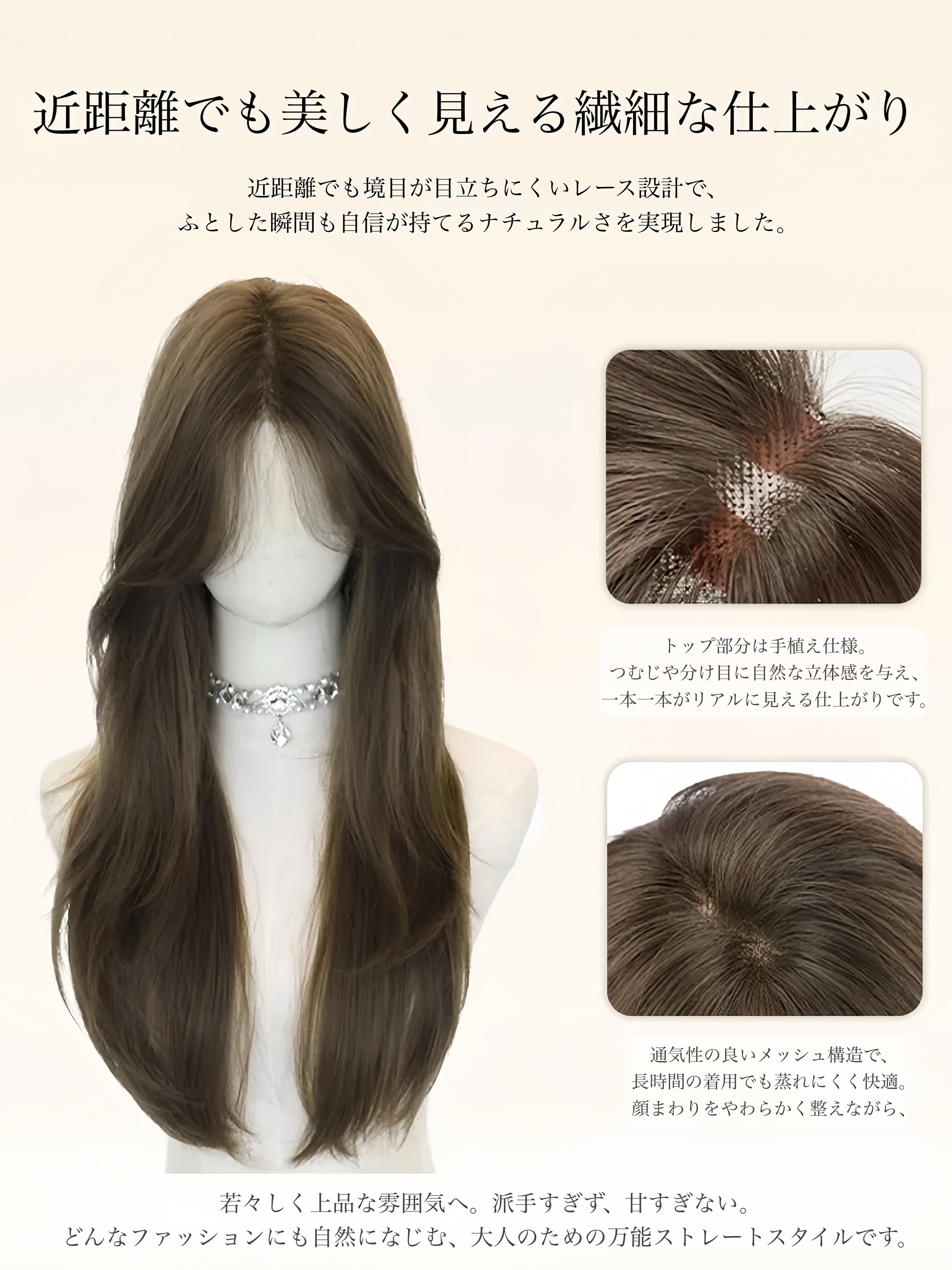 また、着用方法や地毛の状態につきましては当店では確認ができかねるため、