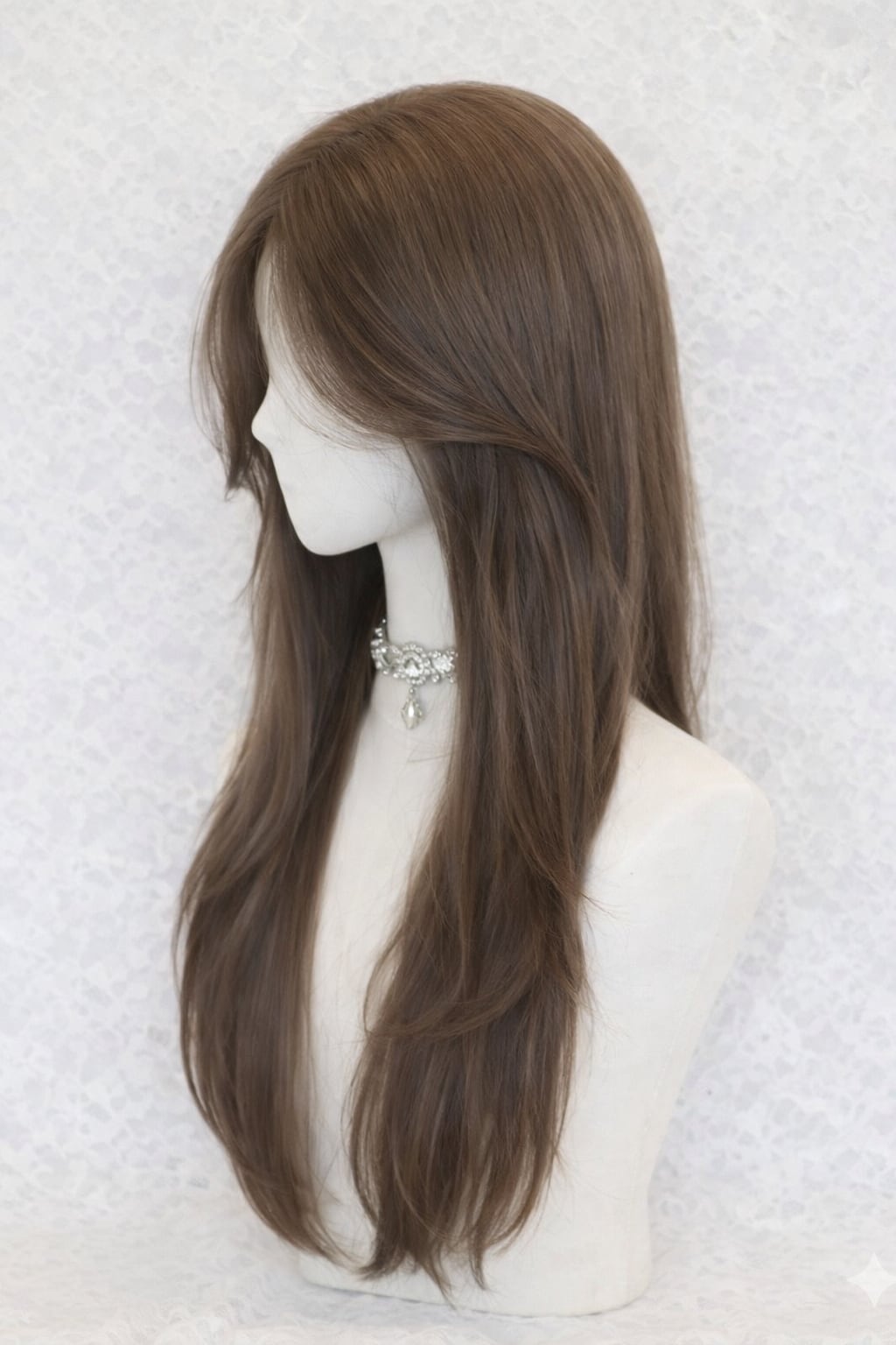 1. まずウィッグキャップを着用し、地毛をできるだけ平らに整えてください。
