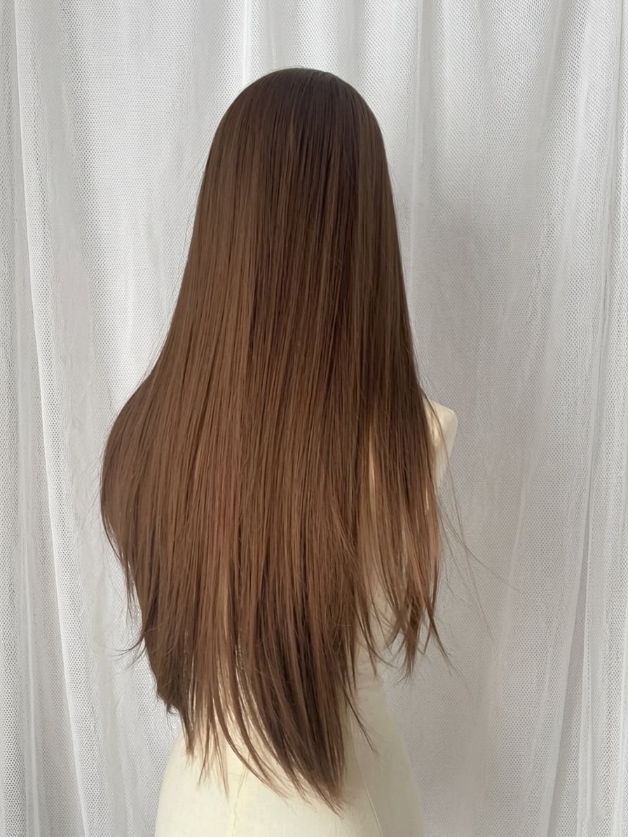 生え際が自然に見えるように微調整し、ブラシや耐熱ウィッグの場合はアイロンで整えます。