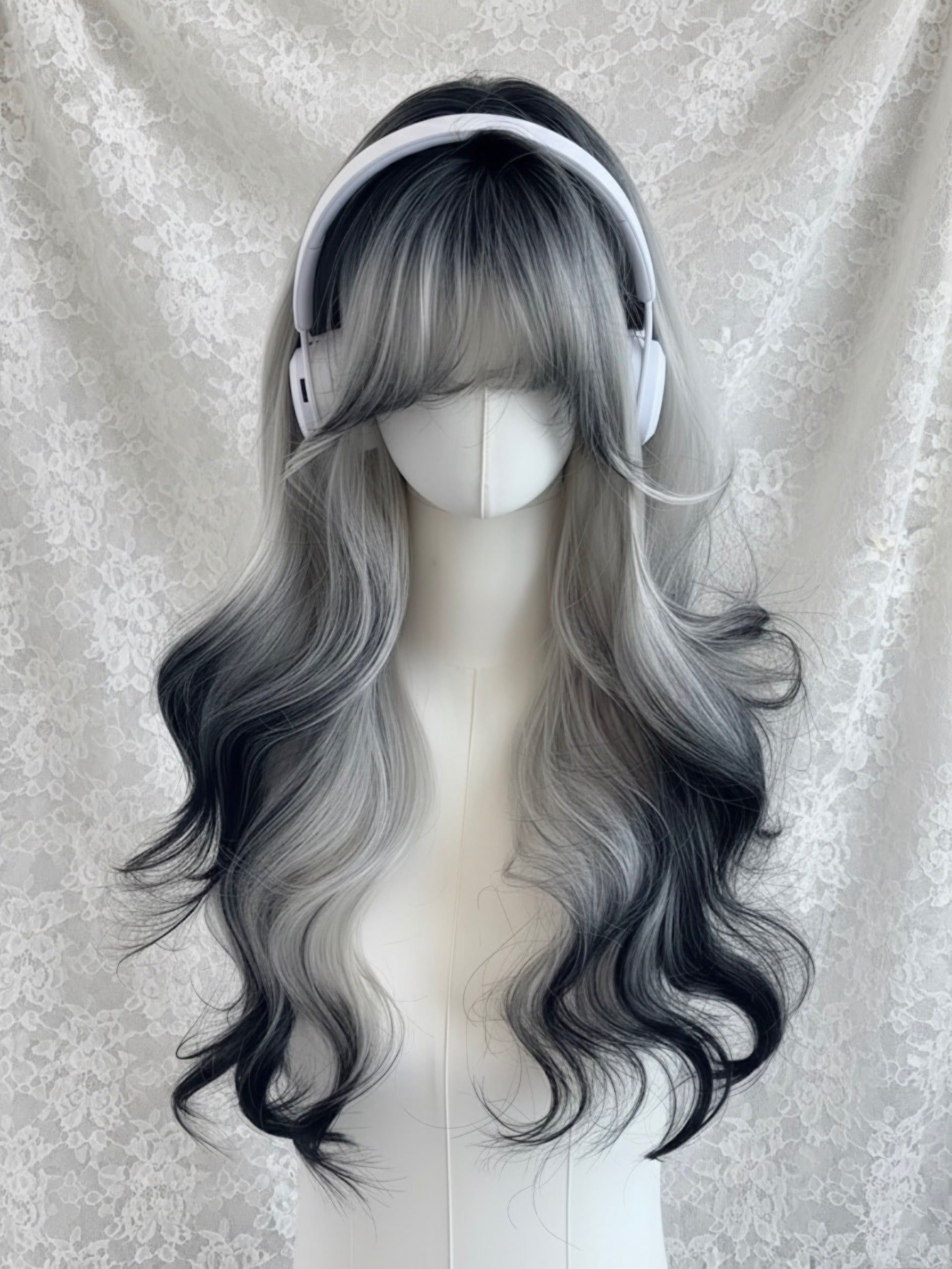 ウィッグスタンドにかけて陰干し。